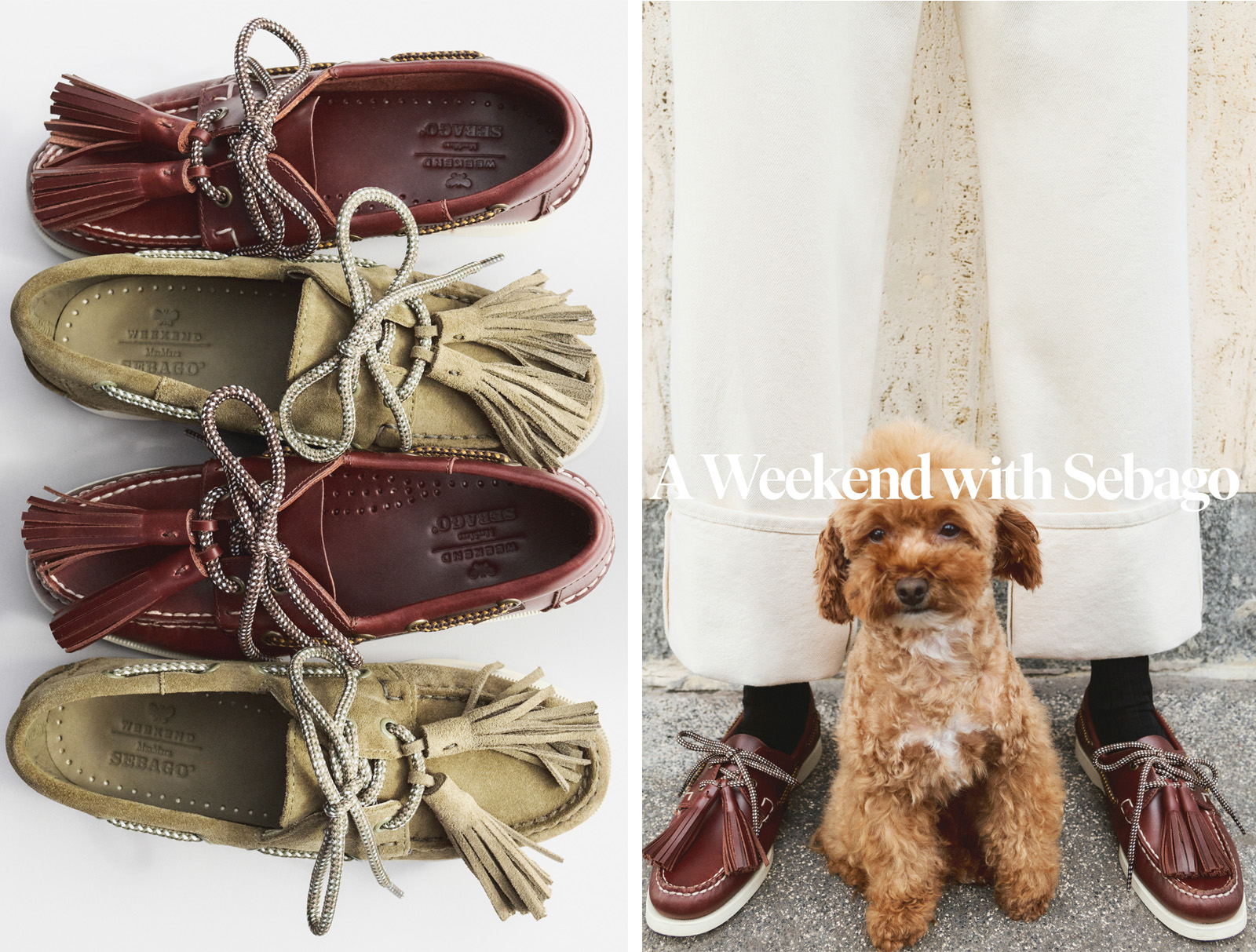 Sebago® and Weekend Max Mara unveil a third capsule collection On March 24, Sebago® and Weekend Max Mara revealed a third capsule collection, “A Weekend with Sebago®,” marking the culmination of a partnership that has impeccably embodied the values of both brands. The new edition for the Spring/Summer 2026 season offers a sophisticated reinterpretation of the iconic Docksides model, presented in four different variations: in leather, in shades of white and brown, and in suede, in blue and khaki tones. A distinctive feature is the integration of tone-on-tone braided laces that run along the sides of the shoe and tie at the front, enhanced by oversized tassels on the upper. |